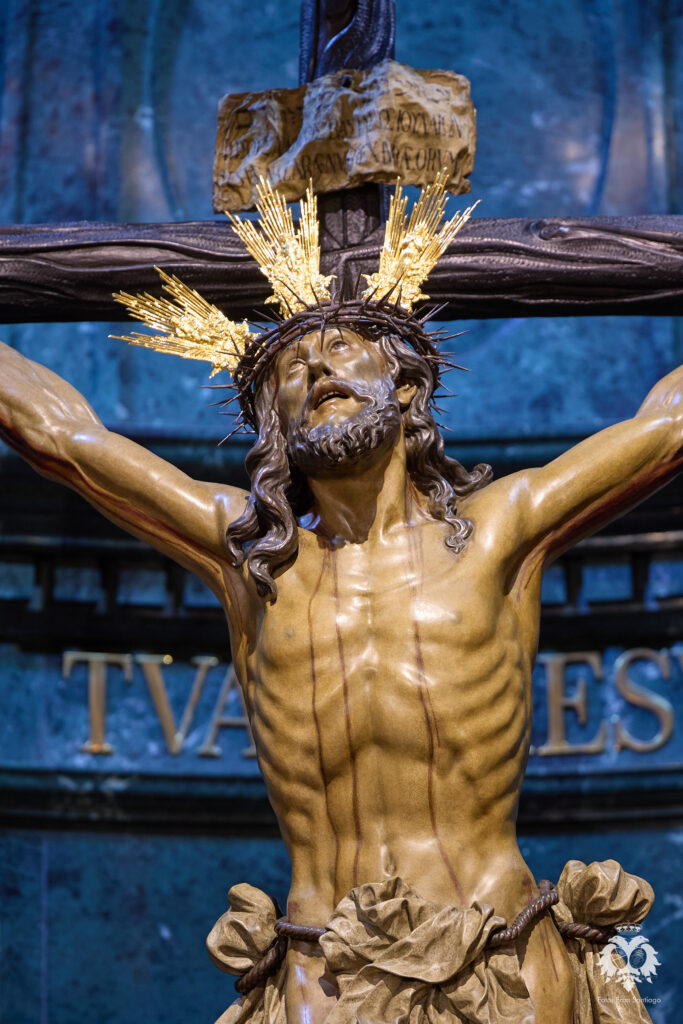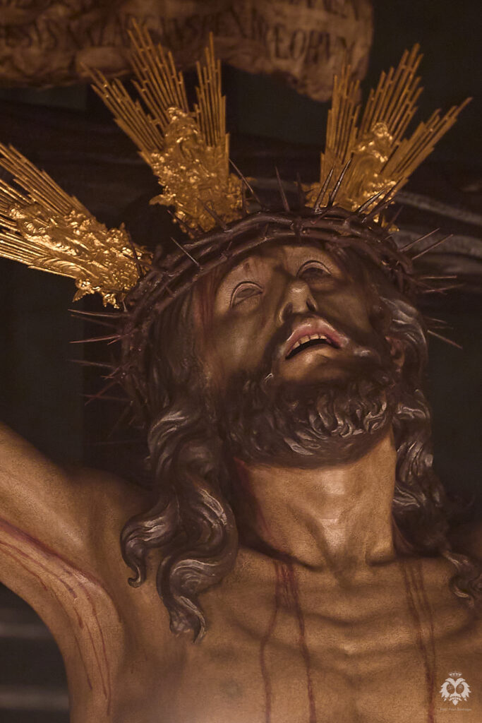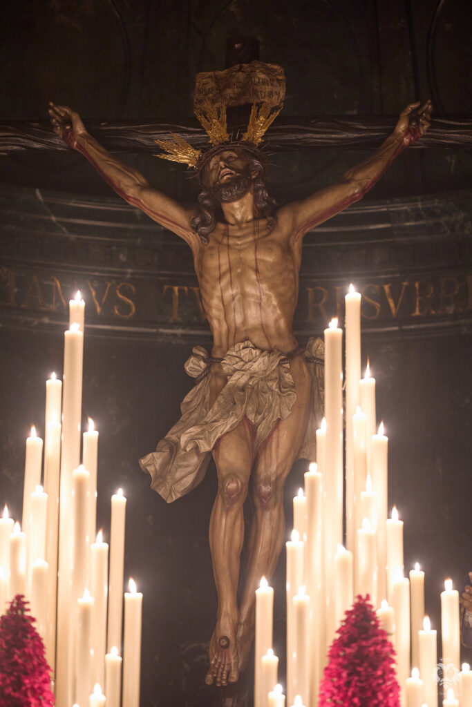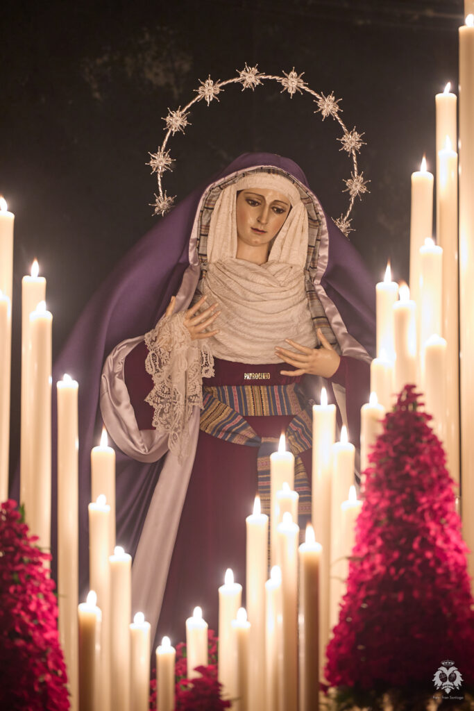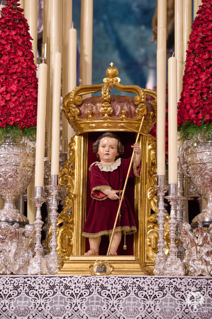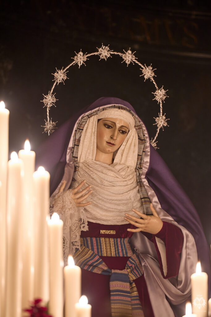 Este ha sido el altar dispuesto por parte del grupo de priostía de la Hermandad para el Solemne Quinario en honor del Santísimo Cristo de la Expiración y Nuestra Madre y Señora del Patrocinio. La Santísima Virgen ha sido vestida de hebrea como cada cuaresma por parte de su vestidor Antonio Bejarano y, para esta ocasión, completa el altar la figura de San Juan que durante el resto del año recibe culto en la Capilla Sacramental.