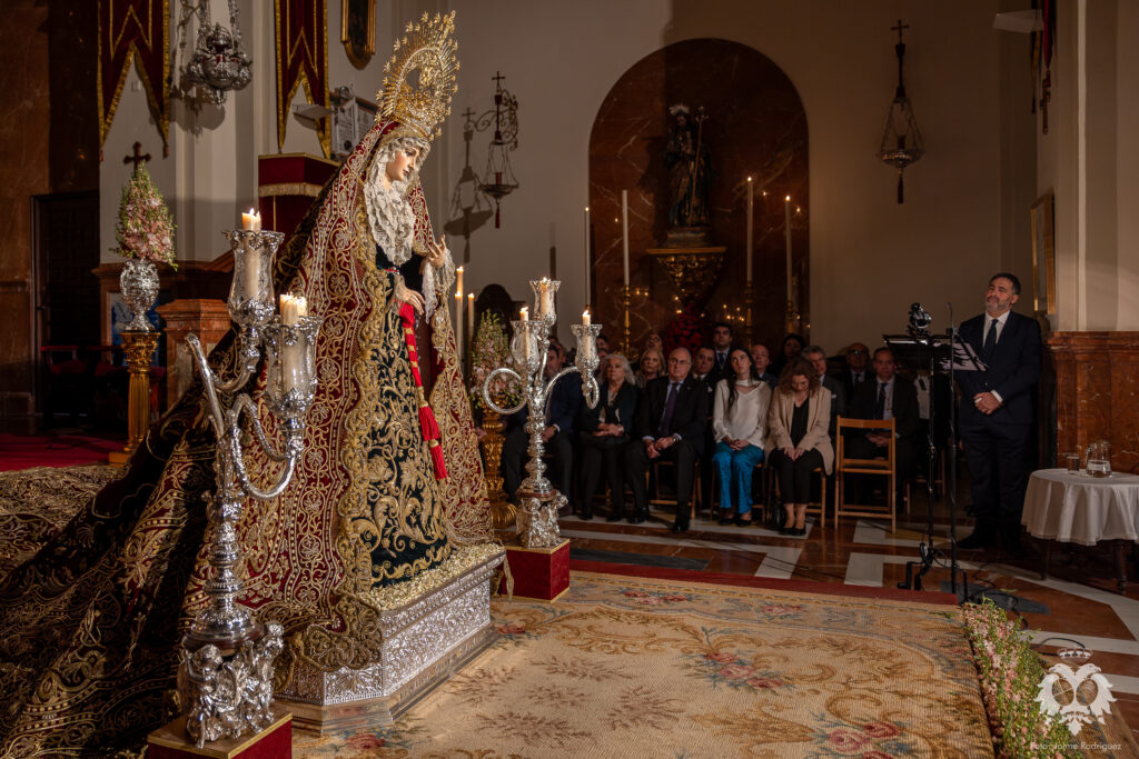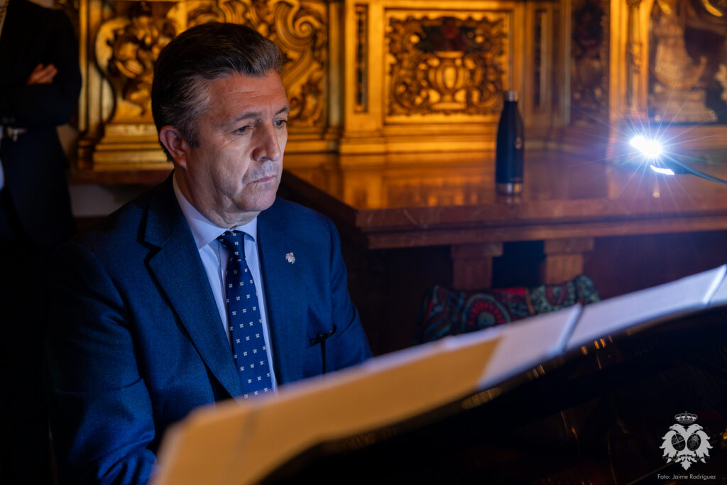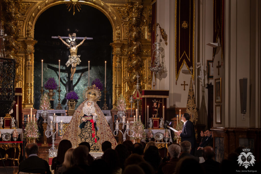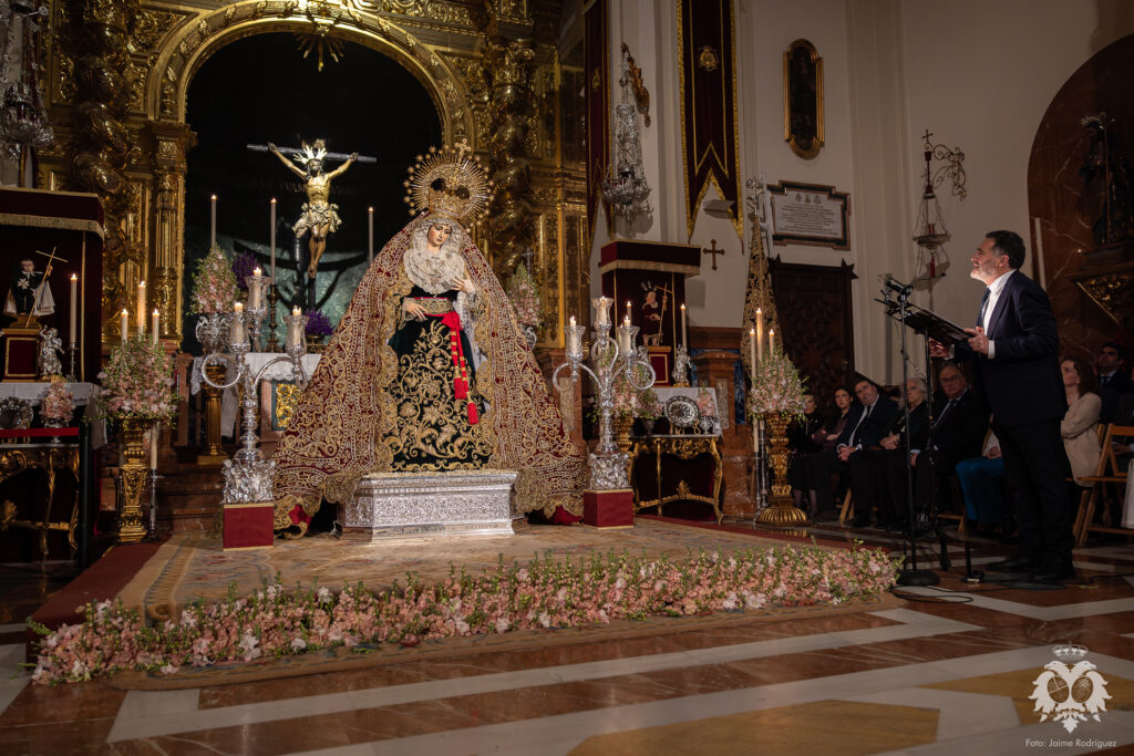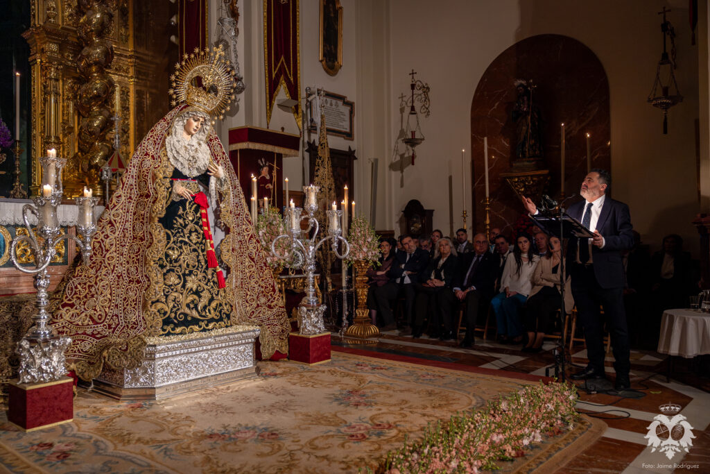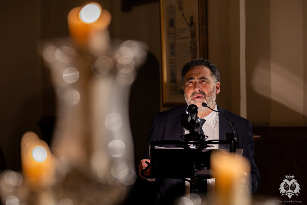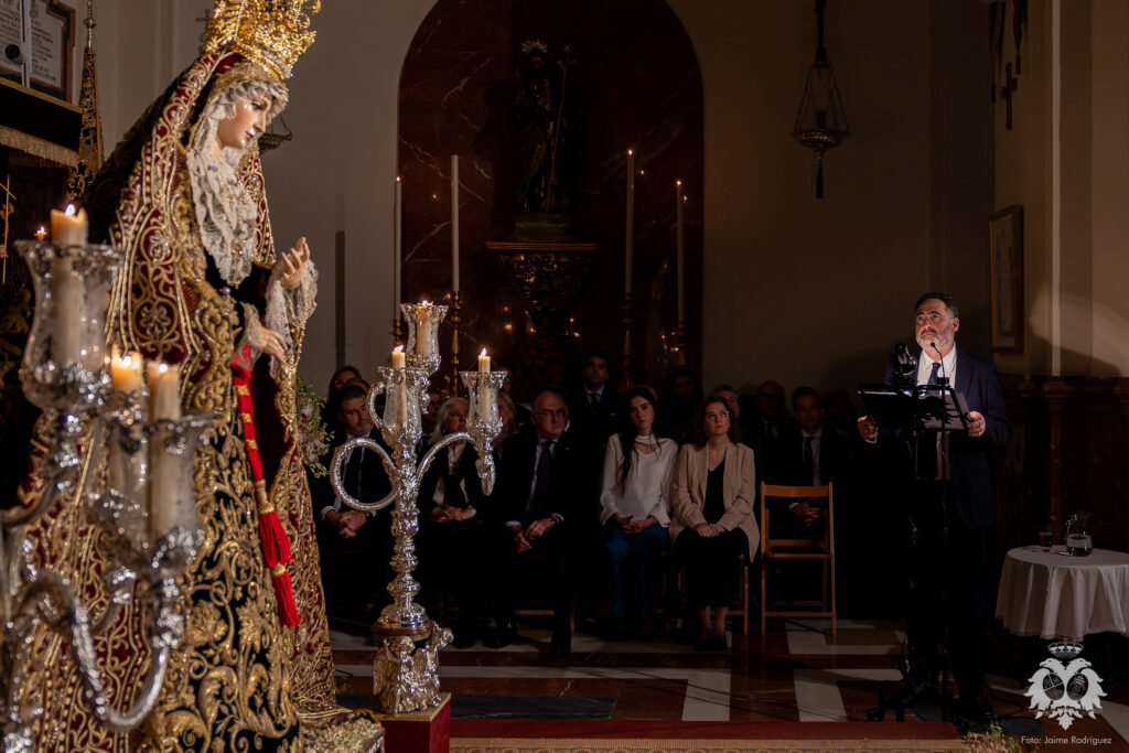 El pasado sábado 21 de marzo, cuando se consumía el primer día del besamanos a Ntra. Madre y Señora del Patrocinio, tuvo lugar el Stabat Mater que cada año se celebra en la Basílica dedicado a la Stma. Virgen y que este año ha sido realizado por D. Tomás del Rey Tirado. Acompañado en el apartado musical por el piano de nuestro Hermano Mayor, José Luis Aldea, el acto transcurrió con especial recogimiento en torno al verso y la prosa en una meditación literario musical que viene a ser el preludio de una nueva Semana Santa en nuestra corporación.